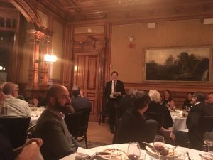 Alan Evans delivers a speech during the CONP supper event