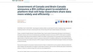 Government of Canada and Brain Canada announce a $10-million grant to establish a platform that will help researchers share data more widely and efficiently