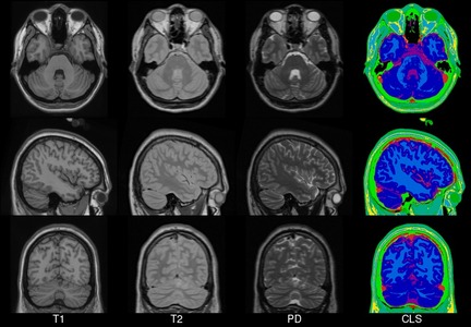 In 2001, within the ICBM project (Mazziotta et al., 1995, 2001a,b), three sites (MNI, UCLA, UTHSCSA) each collected ~150 MRI volume images from a normative young adult population. These images were acquired at a higher resolution than the MNI305 data and exhibited improved contrast. To create MNI152 (a.k.a. ICBM152), each individual in the MNI cohort was linearly registered to MNI305. This new template exhibits better contrast and better definition of the top of the brain and the bottom of the cerebellum due to the increased coverage during acquisition. An automated analysis pipeline (Zijdenbos et al., 2002) also generated gray/white/CSF maps. The templates for image intensity (T1, T2,PD) and tissue type (GM, WM, CSF) maps have subsequently been incorporated into other popular brain mapping software, e.g. SPM, FSL AIR, LORETA,VARETA, BRAINWAVE. In 1996, regional probability maps were generated from the MNI152 database. The MRI volume from a single subject (“Jacob”) was manually segmented into 142 sub-regions. Each subject’s MRI was non-linearly registered to the Jacob atlas using ANIMAL (Collins et al., 1995, 1999), such that the atlas labels were transferred to each of the individual MRI data volumes. These labels were then linearly mapped to MNI152 space to generate regional probability maps.